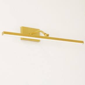 Modelo : Camarim Cor es : Dourado Material : Alumínio Base Canopla : 12 x 7,5 cm Iluminação : Fita de LED Temperatura : 3000K Branco Quente Voltagem : 127V Medida : 14 x 7 x 50 cm Peso : 400g Conteúdo da embalagem : 1 Luminária de Parede