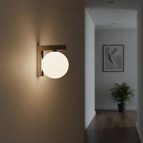 Com design geométrico e acabamento sofisticado, a Arandela Luxuo combina linhas retas em metal grafite com um globo esférico fosco que difunde a luz de forma suave e elegante. Uma peça que une força, modernidade e equilíbrio, ideal para projetos residenciais e comerciais que valorizam o estilo contemporâneo.