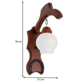 Os adornos metálicos são artesanais, recebem tratamento superficial e são pintados com tinta a pó eletrostática de alta resistência, garantindo durabilidade e sofisticação ao produto. Unidades por embalagem: 1 | Formato da luminária: Arandela | Lugares de montagem: Parede | Materiais: Madeira, Metal, Vidro | Alimentação: Elétrico | Potência: 9 W | Ambientes: Internos | Capacidade de lâmpadas: 1 | Tipos de fontes de luz: LED | Com wi-fi: Não | Aplicações inteligentes compatíveis: Não | Tipo de luminária de teto: Não | É pendente: Não | Comprimento: 0 | Altura: 38 cm | Tipo de soquete da lâmpada: E27 | Sem fio: Não | Autoadesiva: Não | Controle remoto: Não | Sistema de pressão: Não | Wi-Fi: Não | Assistentes virtuais compatíveis: Não | Principais Características do Produto: Madeira | Regulamentações de produtos perigosos: 0 | Fabricante: Mller | EmbalagemAltura-cm: 43 | Modelo: Sela de Cavalo | EmbalagemLargura-cm: 54 | EmbalagemComprimento-cm: 19 | Dias Entrega Fornecedor: 1 | Peso Líquido: 0.0000 | Marca: Luminárias Muller | Cubagem: 0.044118