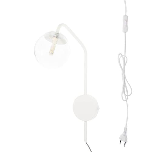 Arandela New Figo Branco c/ plug e interruptor - Vidro Transparente