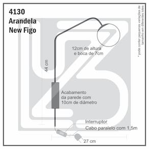 As arandelas são luminárias próprias para pendurar na parede. Elas projetam uma luz difusa, iluminando indiretamente e criando um clima aconchegante.O modelo New Figo possui um globo de vidro, deixando a iluminação suave e marcante. Com Design simples trazem classe e estilo a qualquer ambiente. Descrição Técnica:- Modelo: ARANDELA NEW FIGO- Acabamento: Pintura a pó- Material: Alumínio- Globo: De vidro de 12cm e bocal de 4,5cm- Tamanho (PxA): 44 x 27cm- Interruptor: Sim- Plug: Para tomada padrão 2 pinos- Soquete: Padrão G9- Bivolt: Sim *LÂMPADA NÃO INCLUSA NO PRODUTO*