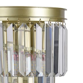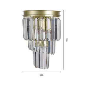 Especificações gerais do produto Dimensões AxLxP (mm): 320x200x120Cor: DouradoMaterial: Metal e CristalGarantia: 1 ano junto ao fabricanteReferência: LA-002MVoltagem: BivoltLocal de Uso: InternoLâmpada Inclusa: NãoNúmero de Lâmpadas: 2Soquete: E14 O que acompanha o produto 1 Arandela