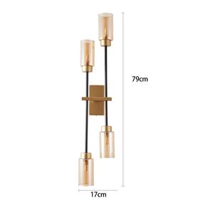 - Dimensões AxLxP (mm): 790x170 - Material: Metal e Vidro - Garantia: 1 ano junto ao fabricante - Referência: 2554 (Dourado Fosco, Preto e Âmbar) - Voltagem: Bivolt - Grau de Proteção: IP 20 - Local de Uso: Interno - Lâmpada Inclusa: Não - Número de Lâmpadas: 4 - Soquete: G9