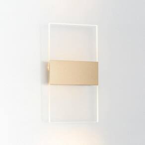 Arandela interna acrilico dourada quarto corredor sala acl90Luminária arandela interna de parede feita em acrílico transparente e metal com acabamento dourado. Com sua iluminação decorativa e charmosa, é ideal para locais como sala, corredor e cabeceira. Descrição:- material: alumínio e acrílico - cor: dourado- pintura: micro texturizado- dimensões a x l : 25 x 13 cm- bocal: g9 - tensão: bivolt Lâmpada não inclusa