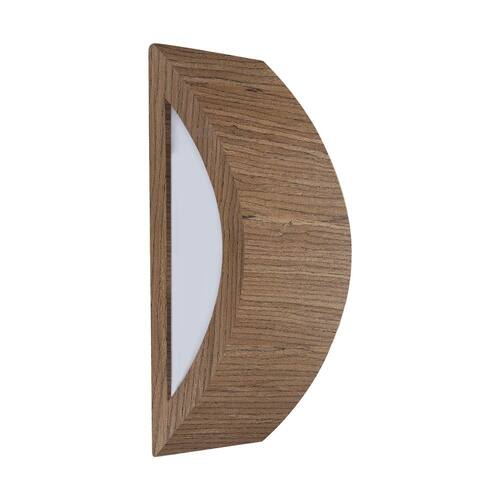 Arandela Parede Meia Lua Madeira E27 Cor: Imbuia Arandela Meia Lua Material : Lâmina de Madeira Natural Medidas : Altura 30cm Largura 13cm Comprimento 9cm Possui difusor em acrílico Utiliza soquete E27 - Lâmpada não inclusa