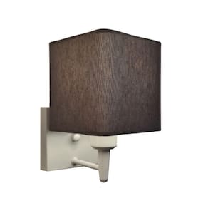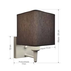 Arandela Quadrada Md-2006 Branco Cúpula em Tecido Cinza Escuro - Bivolt