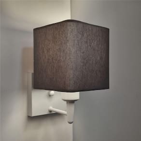 Arandela Quadrada Md-2006 Branco Cúpula Em Tecido Cinza