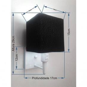 Arandela Quadrada Md-2019 Branco C/ Inter Liga E Desl Cúpula Em Tecido Preto - Bivolt Arandela de parede Quadrada Md-2019 Branca C/ Inter Liga e Desl Cúpula Tecido PretoAs arandelas Lustres Vivare são elementos versáteis e elegantes que podem transformar qualquer ambiente em um espaço cheio de estilo. Seja para adicionar uma iluminação suave, destacar uma parede ou criar um efeito de luz diferenciado.Dimensão:Cúpula em Tecido: 15x14x14cm Arandela de parede Montada: Altura 29cm Largura 14cm Profundidade 17cm Formato: Quadrado Tamanho: Pequeno Especificação:Material: Cúpula em Tecido Estrutura em Alumínio Base Parede: Quadrado 12x12x2cm Resistente: Á Maresia Voltagem: 110V/220V Liga e Desliga: Interruptor no Soquete Tipo de Soquete: E27 Lâmpada Utilizada: Led Bulbo Até 16w ou Fluorescente Espiral Até 25w Cada Capacidade de Lâmpadas: 1 Observação:Acompanha Lâmpada: Não Possui Led Integrado: Não Garantia: 12 Meses Manual de Instalação: Sim Arandela de parede Montada: Sim Controle de Luminosidade: Não Tipo de Embalagem: Caixa Conservação e Manutenção do Produto:A Limpeza deve ser realizada com o produto desligado. Remova o lustre que pode ser lavado com sabão neutro. Nunca utilize produtos químicos e abrasivos Dica:Antes de comprar o seu produto verifique as medidas, o local onde pretende instalar e se necessário o serviço de um profissional qualificado.