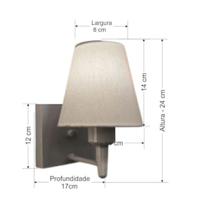 Arandela de parede Quadrada Md-2034 Cinza Cúpula em Tecido Cone Branca - BivoltAs arandelas Lustres Vivare são elementos versáteis e elegantes que podem transformar qualquer ambiente em um espaço cheio de estilo. Seja para adicionar uma iluminação suave, destacar uma parede ou criar um efeito de luz diferenciado.Dimensão: Cúpula em Tecido: 14x07x14cm Arandela de parede Montada: Altura 24cm Largura 14cm Profundidade 17cm Formato: Quadrado / Cone Tamanho: Pequeno Especificação: Material: Cúpula em Tecido Estrutura em Alumínio Base Parede: Quadrado 12x12x2cm Resistente: Á Maresia Voltagem: 110V/220V Liga e Desliga: Não Tipo de Soquete: E27 Lâmpada Utilizada: Led Bulbo Até 16w ou Fluorescente Espiral Até 25w cada Capacidade de Lâmpadas: 1 Observação: Acompanha Lâmpada: Não Possui Led Integrado: Não Garantia: 12 Meses Manual de Instalação: Sim Arandela de parede Montada: Sim Controle de Luminosidade: Não Tipo de Embalagem: Caixa Conservação e Manutenção do Produto: A Limpeza deve ser realizada com o produto desligado. Remova o lustre que pode ser lavado com sabão neutro. Nunca utilize produtos químicos e abrasivos Dica: Antes de comprar o seu produto verifique as medidas, o local onde pretende instalar e se necessário o serviço de um profissional qualificado.