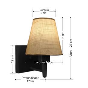 Arandela Quadrada Md-2034 Preto Cúpula em Tecido Cone Palha - Bivolt