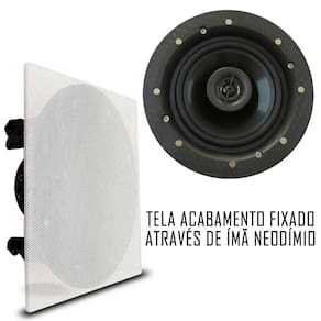 - Woofer: 6.5" cone injetado em PP, Borda de borracha, grade metálica, bobina de 1" corpo de alumínio, ímã ferrite 81x15mm;