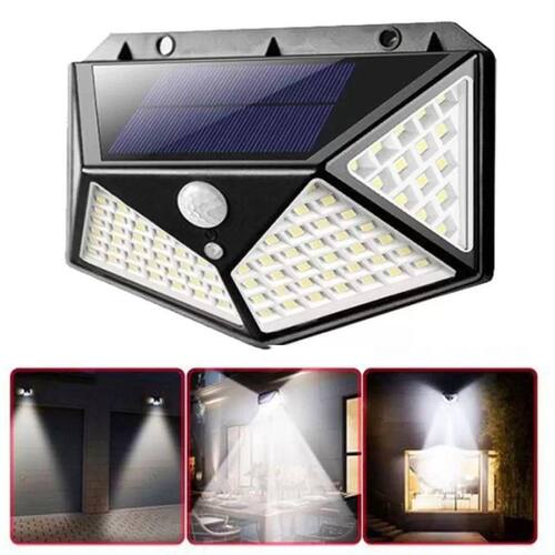 Arandela solar 100 led com sensor para jardim externa prova d'água luz led solar lâmpada