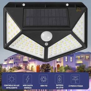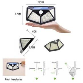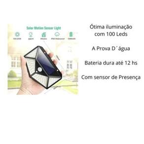 Conteúdo da embalagem: 1x luminaria solar sensor presença 100 led área externas corredor