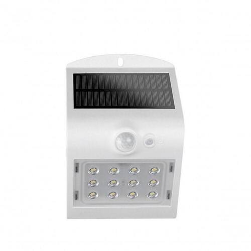 - Acabamento / funcionalidades: Branco; LED Integrado; Ativação por sensor de presença; Instalação rápida e fácil; Tempo de carga: 8h; 2 modos de operação; Durante o dia a arandela permanece desligada