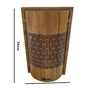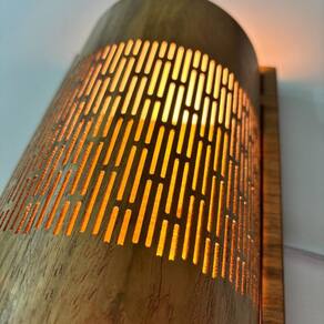 Dê um toque de charme e elegância à sua decoração com a Arandela Tela. Fabricada em MDF resistente e revestida com lâmina natural de madeira, essa peça combina beleza, durabilidade e um acabamento impecável que valoriza qualquer ambiente.