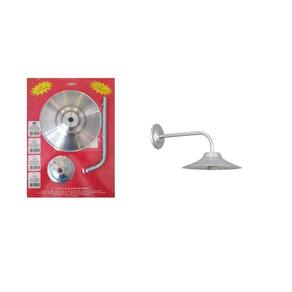 O kit contém: prato em alumínio polido, braço galvanizado de 5/8 de 40cm comprimento total , soquete cerâmico e27 e canopla rosqueável galvanizada.