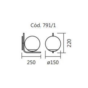 Marca SpotLine Referência 791/1 Dimensões 150x250x220mm Base E27 Quantidade de Lâmpada s 1 Lâmpada s Não Inclusa s Material Alumínio e Vidro Observações Globo 150mm Garantia 1 ano após o recebimento do produto Ean: 7898131108312