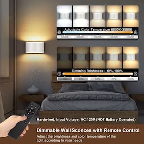 Especificações: Material: Alumínio puro Potência: 12 W cada luz, 960 Lm Fonte de luz: chips LED de alta qualidade Controle remoto regulável: escurecimento 10%-100% Temperatura de cor ajustável: 3000K ~ 6000K Direção de iluminação: iluminação para cima e para baixo Fonte de alimentação: Com fio, AC 120V Estilo: moderno e moderno Longa vida útil: >30.000 horas Conteúdo da embalagem: 2 arandelas de parede LED 1 controlo remoto. 2 pacotes de ferragens de montagem. 1 x manual do utilizador (sem garantia - Temperatura de cor regulável e ajustável: as arandelas de parede LED vêm com um controle remoto, ajustam o nível de brilho da luz 10%-100% e a temperatura da cor 3000K ~ 6000K conforme você gosta, atenderá a todas as suas necessidades de iluminação. - Controle remoto multifuncional: O alcance do controle é de cerca de 1,8 m, projetado com função de memória, função de temporizador e modo de luz noturna, você pode operar este arandela de parede de forma inteligente em qualquer lugar de acordo com suas preferências. - Material: Corpo da lâmpada de alumínio puro (branco); fonte de luz: a fonte de luz é de chips LED de alta qualidade dentro; Potência: 12W cada luz, 960 lm, a iluminação é brilhante e suave, sem cintilação e economiza energia e longa vida útil. Projetado com cobertura fosca na parte superior e inferior da lâmpada, a iluminação será mais suave, cuidando da saúde dos olhos. - Fácil de instalar: com fio, tensão de entrada: AC 120V. Compatível com caixa de junção padrão dos EUA, todas as ferragens de montagem das luminárias de parede necessárias estão incluídas no pacote. (NOTA: Não funciona com bateria, não sem fio) - Garantia: Confiamos na qualidade de nossos arandelas de parede, oferecendo 60 dias de devolução do dinheiro, 2 anos de substituição.