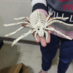 Prepare-se para dar um toque sutil e sinistro, à sua decoração de Halloween! Com Esqueleto de Aranha, acessório perfeito para criar aquele arrepio sem exageros, ideal para festas, mesas de doces ou vitrines.