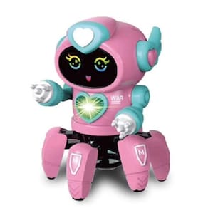 Linda robô dançante Sweet Bot em plástico PP de alta qualidade, com luzes coloridas e som divertido. Possui 7 cores de luzes,rotação dos pés, movimento nas mãos, anda para frente e para traz.- Utiliza 3x pilhas AA (não inclusas)- Tipo de material : Plástico- Dimensões do Produto : 18 X 14 X 14 CM