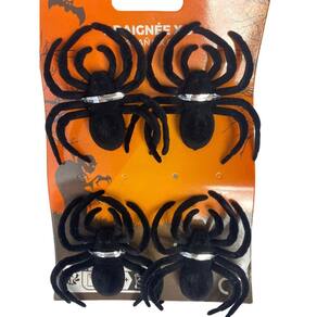 Especificações: - Material: Isopor, Plástico e pelúcia - Cor: Preto - Tamanho: 6x6cm - Quantidade: 4 aranhas