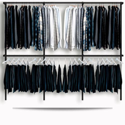 Este modelo é recomendado para montagem de lojas, lavanderias ou residências. O trilho graduado contribui para o fácil deslocamento de altura dos cabideiros ou mesmo a remoção de um deles em caso de vestidos ou casacos longos.
