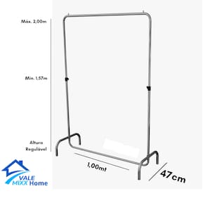 Fabricada em aço resistente, esta arara possui um sistema articulável que permite ajustar a altura de 1,30 a 1,98 metros. Isso garante que suas peças sejam apresentadas de forma excepcional, proporcionando a estabilidade necessária para suportar uma variedade de roupas com segurança.