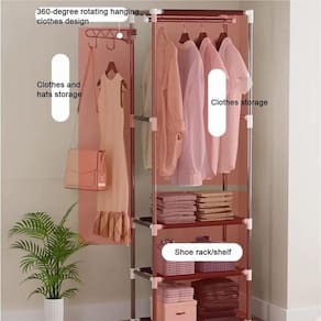 Portátil e Multifuncional: Este rack de roupas é portátil e oferece espaço para pendurar roupas, além de prateleiras adicionais para armazenamento de outros itens, como sapatos, bolsas e acessórios.