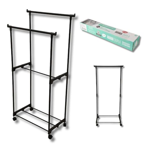 Precisa otimizar e organizar seus espaçosUma arara de roupas pode ser a solução perfeita para a sua necessidade, sendo ideal para a organização do seu ambiente e não ocupa muito espaço.Imagine então uma arara dupla para roupas, que suporta até 5kg de peças. Além de ser extremamente versátil e poder ser utilizada no seu quarto, escritório, ou até na sua loja.O design da arara dupla permite que ela seja incluída nestes cômodos sem ocupar muito espaço no ambiente. E o melhor de tudo, é que ela pode ser desmontada e remontada facilmente, sem prejudicar a sua estruturacaracterísticas:capacidade máxima suportada: aproximadamente 5kg;fácil montagem;não necessita de ferramenta para montagem;dimensões aproximadas: 65cm x 34cm x 130cmmedidas do produto: altura máxima com rodinha: 1,60 cm; largura: 75 cm; comprimento: 41 cm.Itens inclusos1 arara dupla Ean: 7899850351072
