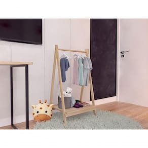 Cabideiro montessroriano para roupas infantil no tamanho M O método montessoriano visa a autonomia das crianças. Desde muito cedo elas são estimuladas a realizar as atividades do dia a dia sozinhas, por isso quanto mais seus pertences estiverem ao seu alcance mais cedo ela se tornará independente e organizada. Nosso cabideiro permite justamente isso, tem altura ideal para que a criança possa retirar e colocar as roupas, fantasias, uniformes e depois guarda-los e assim aos poucos ela passará a se vestir cabideiro é confeccionado em madeira de reflorestamento pinus. É lixado e encerado, para evitar que solte farpas e a cera mantem a madeira cor do pinus é linda!!!