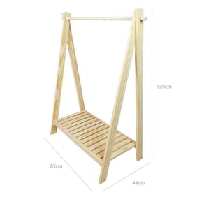 "A Arara para Roupas Slim pode ser usada no quarto dos pequeninos, fica super descolada e fofa! Ela possui uma prateleira ripada onde pode-se organizar os sapatos ou roupas e haste em madeira para o cabideiro."