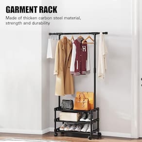 Versatilidade e FuncionalidadeCom 3 prateleiras e um cabideiro integrado, esta arara oferece espaço suficiente para pendurar roupas e organizar outros itens essenciais. A sapateira inferior é ideal para armazenar sapatos, mantendo tudo ao seu alcance e organizado.