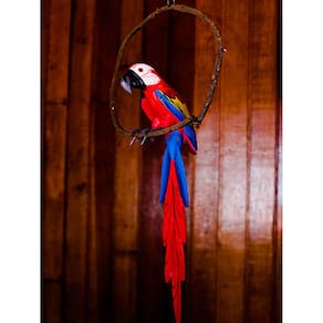Arara de madeira, para decoração de ambientes como: varandas, jardins e áreas externas. Produto de origem artesanal, esculpido e pintado à mão. Tamanho: 95 x 12 x 12 cm Como montar: encaixe os dois pés no corpo da arara. após esse procedimento, encaixe os pés já fixados, no cipó arco , que contém dois furos para encaixe. Cipó arco de madeira já incluso. Marca: Não Informado