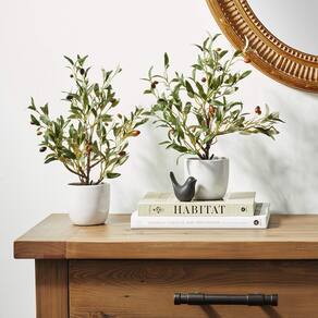 Árbol artificial de olivo de seda casi natural de 45 cm con jarrón (juego de 2). Tendrás ganas de arrancar una aceituna. Admirado por sus largas hojas verdes. Simple y elegante. Tamaño de la maceta: 10 cm de ancho x 9 cm de alto.