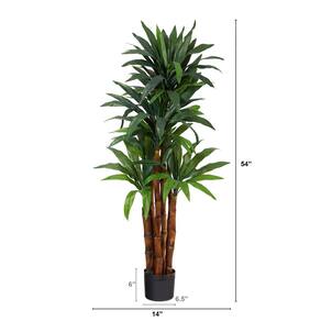 Árbol Artificial Dracaena de 1.4 m (4.5 pies) con tronco natural y maceta de vivero negra. Este árbol artificial es impresionante, con hojas puntiagudas, brillantes y variegadas que apuntan en distintas direcciones para un aspecto frondoso. El tronco texturizado aporta realismo. Medidas totales: 35.5 cm de ancho x 35.5 cm de profundidad x 137 cm de alto. Maceta: altura 15 cm, ancho y profundidad 16.5 cm. No requiere mantenimiento: sin riego ni poda, siempre luce fresco y lleno. Fabricado con materiales sintéticos para una apariencia muy natural. Para limpiar, solo use un paño seco y suave. Al sacarlo de la caja, forme y esponje las ramas para dar volumen. Ideal para decoración interior, aportando un toque tropical y diferente a su espacio.