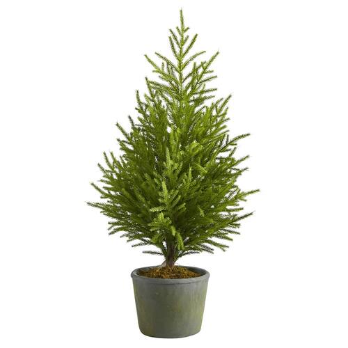 Árbol Artificial Pino de la Isla Norfolk de 90 cm con aspecto natural en maceta decorativa. Adorno estacional perfecto para quienes desean un árbol de Navidad realista sin las complicaciones del árbol natural. Este árbol sin mantenimiento presenta un follaje de pino rico con ramas flexibles, perfecto para exhibir adornos navideños y decoraciones. Con 90 cm de altura incluyendo la maceta decorativa, crea un ambiente navideño tradicional en cualquier espacio. Elaborado con materiales de alta calidad que reproducen fielmente la apariencia de un pino natural, su diseño detallado incluye ramas y agujas que aportan un toque auténtico y duradero año tras año. Dimensiones: 41 cm Ancho x 30 cm Profundidad x 91 cm Alto; maceta: 18 cm Alto x 23 cm Ancho x 23 cm Profundidad. Las ramas articuladas permiten moldearlas para obtener la forma y densidad deseadas, adaptándose a tu estilo. Fácil de mantener gracias a sus 64 ramas doblables, no requiere riego, poda ni limpieza de agujas caídas. Solo necesita un ligero desempolvar para lucir siempre impecable durante la temporada navideña. Ofrece múltiples opciones para decorar: puedes colgar adornos, luces y guirnaldas fácilmente gracias a sus abundantes ramas y puntas.