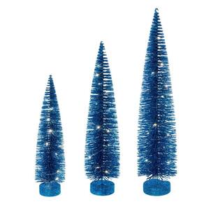 Conjunto de árboles de cepillo de botella Vickerman 1620-24 en color turquesa con luces. Ilumina tu mesa navideña con nuestro trío de árboles de cepillo de botella, con alturas de 41, 51 y 61 cm para una exhibición encantadora. Decorados con pequeñas luces led claras, cada árbol funciona de forma independiente con su propio paquete de baterías, que requiere un total de 9 baterías AA. El paquete de baterías ofrece tres configuraciones: apagado, encendido y temporizador de 6 horas para crear un ambiente navideño sin esfuerzo. Disfruta la magia de la temporada con estas decoraciones versátiles y encantadoras. Baterías no incluidas. Especificaciones. Color turquesa. Tamaño 41 x 51 x 61 cm. Tipo: árbol de mesa. Estilo de luz: operado con baterías. Material principal: PVC, alambre de hierro, purpurina, base MDF.