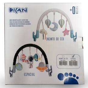 O arco para carrinho ou berço com ícones espaciais oferece entretenimento para os bebês e toda a qualidade Dican.