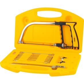 Marca: VonderConteúdo da Embalagem:1 Jogo composto por maleta plástica com 12 peças, sendo: 1 arco de serra com lâmina , 5 lâminas de aço, 2 lâminas diamantadas, 1 lâmina tipo serrote, 1 parafuso borboleta e 2 furadores.Destaques e diferenciais:Possui estrutura metálica regulável que possibilita trabalhos com diferentes modelos de lâminas lâmina diamantada, lâmina de aço e lâmina tipo serrote .Aplicações e dicas de uso:Indicado para cortar diferentes tipos de materiais, tais como: madeira, plástico, borracha, vidro, metal, azulejo e PVC. Espessura máxima de corte do cortador de vidro: 5 mm. NÃO indicado para vidros temperados. Características Técnicas:Medida da lâmina do arco de serra: 110 mm - 145 mm Material do cabo do arco de serra: Plástico Ean: 7893946650629