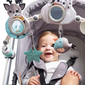 O produto acompanha dois estágios do desenvolvimento infantil, atendendo a fase de exploração sensorial desde o nascimento e a fase de puxar objetos a partir dos cinco meses. Os clipes universais permitem fácil fixação na maioria dos carrinhos, cadeiras de descanso, moisés, cadeiras de alimentação e outros acessórios, garantindo praticidade no uso diário.