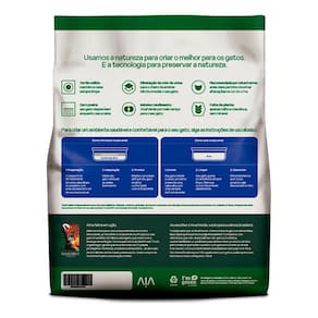 - Super absorvente; - 100% milho e mandioca; - Natural e Biodegradável; - Ideal para múltiplos gatos; - Máxima eliminação de odor; - Forma torrões sólidos instantâneos; - Pode ser descartada no vaso sanitário. - Zero desperdício - Não forma lama - Sem poeira - Grãos pequenos