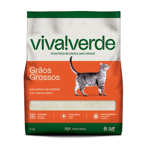 A Areia Higiênica Viva Verde Grãos Grossos Biodegradável para Gatos oferece o conforto ideal para seu amiguinho, forma torrões firmes que facilitam a remoção e contribui para a limpeza da bandeja sanitária. A sua cor clara possibilita observar alterações na coloração da urina, que podem indicar eventuais problemas urinários, nesse caso é importante consultar o médico veterinário.