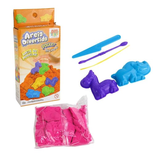 Areia Mágica 150g com 2 Moldes Bichos Sortid Brinquedo sensorial Fidget Toys Areia Divertida Edição de Bolso Bichos, conhecida como areia satisfatória, permite criar moldes, aliviar o desconforto e entreter a criançada. Contém: 2 Moldes de Plástico, 3 Ferramentas de Plástico, 1 Saco com Areia de Modelar de 150gr. Marca : DM Tipo de material : Areia de quartzo, Plástico Cores ou Estampa : diversos Dimensões do Produto : 19,5 X 9 X 3,5 CM Peso Bruto (Gramas) : 0.196 Marca: Não Informado