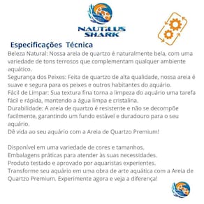 Disponível em uma variedade de cores e tamanhos. Embalagens práticas para atender às suas necessidades. Produto testado e aprovado por aquaristas experientes. Transforme seu aquário em uma obra de arte aquática com a Areia de Quartzo Premium. Experimente agora e veja a diferença!