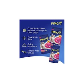Com uma exclusiva tecnologia Pipicat Odor Block, a Areia Perfumada Pipicat possui controle de odores superior que inibe a formação de amônia, prevenindo o mau odor na bandeja sanitária. Além disso conta com grãos extrafinos e de boa absorção que foram torrões mais firmes e fáceis de recolher.