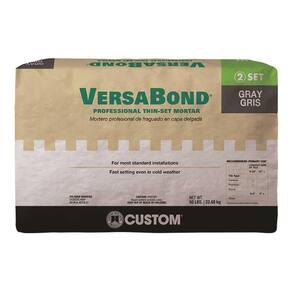- Descrição do produto: este item é produtos de construção personalizados MTSG50 VersaBond Fortified Thin-Set, 22,7 kg, cinza argamassa. utilizado para remendo, preenchimento e reparo de materiais de pintura. Este produto é fabricado nos Estados Unidos. Do fabricante Uma fórmula , argamassa multiuso com alta flexibilidade e força de adesão. Com excelente adesão a subpisos de madeira compensada, esta argamassa também é ideal para instalações de porcelana e azulejos de vidro.