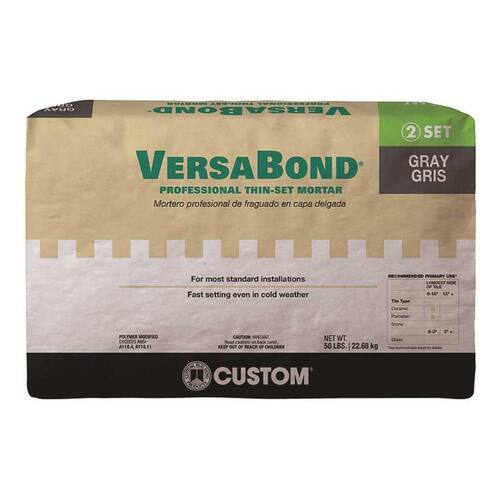 - Este item é Custom Building Products MTSG50 VersaBond Fortified Thin-Set, 22,7 kg, cinza almofariz