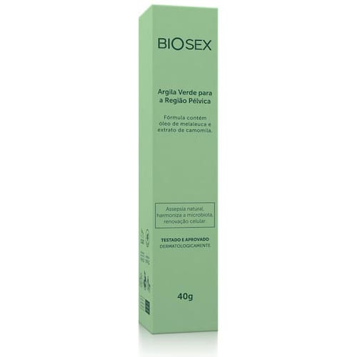 Mimos de Vênus apresenta: Argila Verde Biosex A Argila Verde Biosex é um item essencial para a sua rotina de cuidados com a região pélvica. Sua fórmula poderosa atua harmonizando a microbiota, proporcionando assepsia natural e prevenindo o desenvolvimento de fungos e bactérias que causam mau odor. O uso regular da Argila Verde Biosex promove uma pele mais limpa, purificada, suave e fresca. Este produto natural e orgânico é livre de propilenoglicol, apresenta pH neutro e possui uma ampla gama de benefícios para a saúde da pele. Características Principais Propriedades: Adstringentes, esfoliantes e bactericidas Benefícios: Harmoniza a microbiota, promove renovação celular e hidratação Principais Ativos: Óleo de e Extrato de Camomila Uso: Unissex e adequado para cuidados com a região pélvica Testado: Dermatologicamente e ginecologicamente Modo de Uso e Cuidados Passo 1: Aplique uma camada uniforme na região pélvica limpa e seca. Passo 2: Deixe agir pelo tempo necessário, de 15 a 30 minutos, dependendo do tipo de tratamento desejado. Passo 3: Remova a argila durante o banho, com água corrente. Passo 4: Use até três vezes por semana para melhores resultados. Por que Usar A Argila Verde Biosex é uma opção natural e eficaz para promover a assepsia e a saúde da pele na região pélvica. Com seus ativos naturais, como o óleo de e o extrato de camomila, este produto oferece uma série de benefícios, desde a hidratação até a renovação celular, proporcionando uma pele revitalizada e firme. Precauções e Especificações Técnicas Uso Externo: Não ingerir. Segurança: Mantenha fora do alcance das crianças e evite o contato com os olhos. Ingredientes: Aqua, Disodium EDTA, Ceteareth-20, Cetyl Alcohol, Glyceryl Stearate, Isopropyl Myristate, Kaolin, Phenoxyethanol, DMDM Hydantoin, Chamomilla Recutita Flower Extract, Titanium Dioxide, Alternifolia Oil, CI19140, CI14090, Parfum, Buthylpropional. Origem: Nacional Validade: 24 meses após a data de fabricação. Verifique a data na embalagem. Conteúdo da Embalagem 1x bisnaga da Argila Verde Biosex contendo 40g