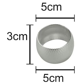 Argola de Guardanapo Metal Prateado com 4 Peças Bon Gourmet Conjunto 4 anéis para guardanapos metal prateado. Os anéis para guardanapo são confeccionados em aço inox, a escolha certa para você que busca por sofisticação e originalidade a mesa, perfeito para decorar e compor sua mesa posta Altura: 3cm Diâmetro: 5cm Material: Metal Marca: Oren Ean: 7895730607352