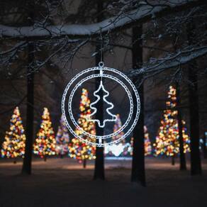Ilumine seu ambiente com elegância e um toque moderno com a Argola Dupla com Figura de Árvore 80 LEDs Branco da Global. Perfeita para compor decorações natalinas, vitrines, festas ou até mesmo ambientes internos e externos durante o ano todo, esta peça combina design sofisticado e iluminação suave em LED, criando um efeito visual encantador.